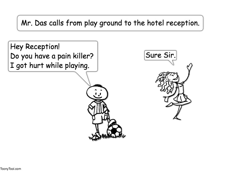 Mr. Das got hurt while playing and he messaged to the reception number using SMS asking for painkiller.