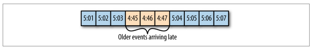 Handling events that arrive at the stream at the wrong time is a challenge not just in stream processing but also in traditional ETL systems. For example, a mobile device of a Uber driver loses mobile signal for a few minutes and sends a few minutes worth of events when it reconnects.